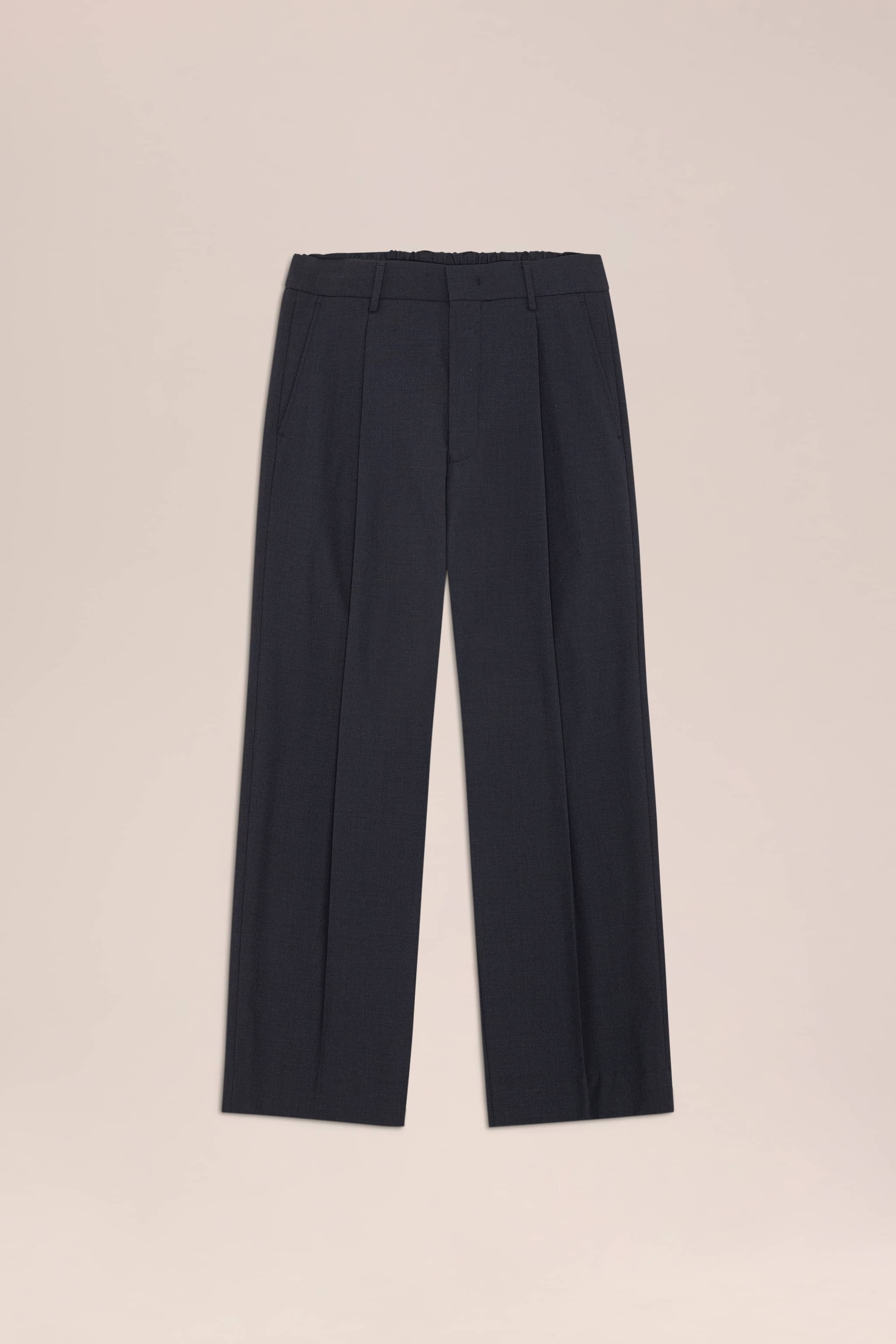 Relaxed-fit trousers crafted from a washable wool-blend fabric with a drapey handfeel.