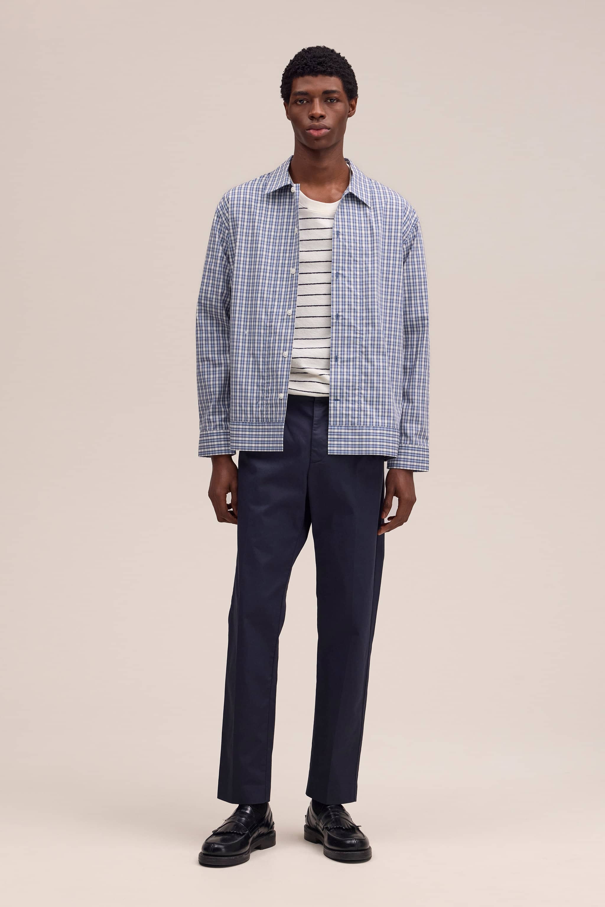 Regular fit chinos with a tapered leg in a Panama weave with a drapey handfeel and medium weight.