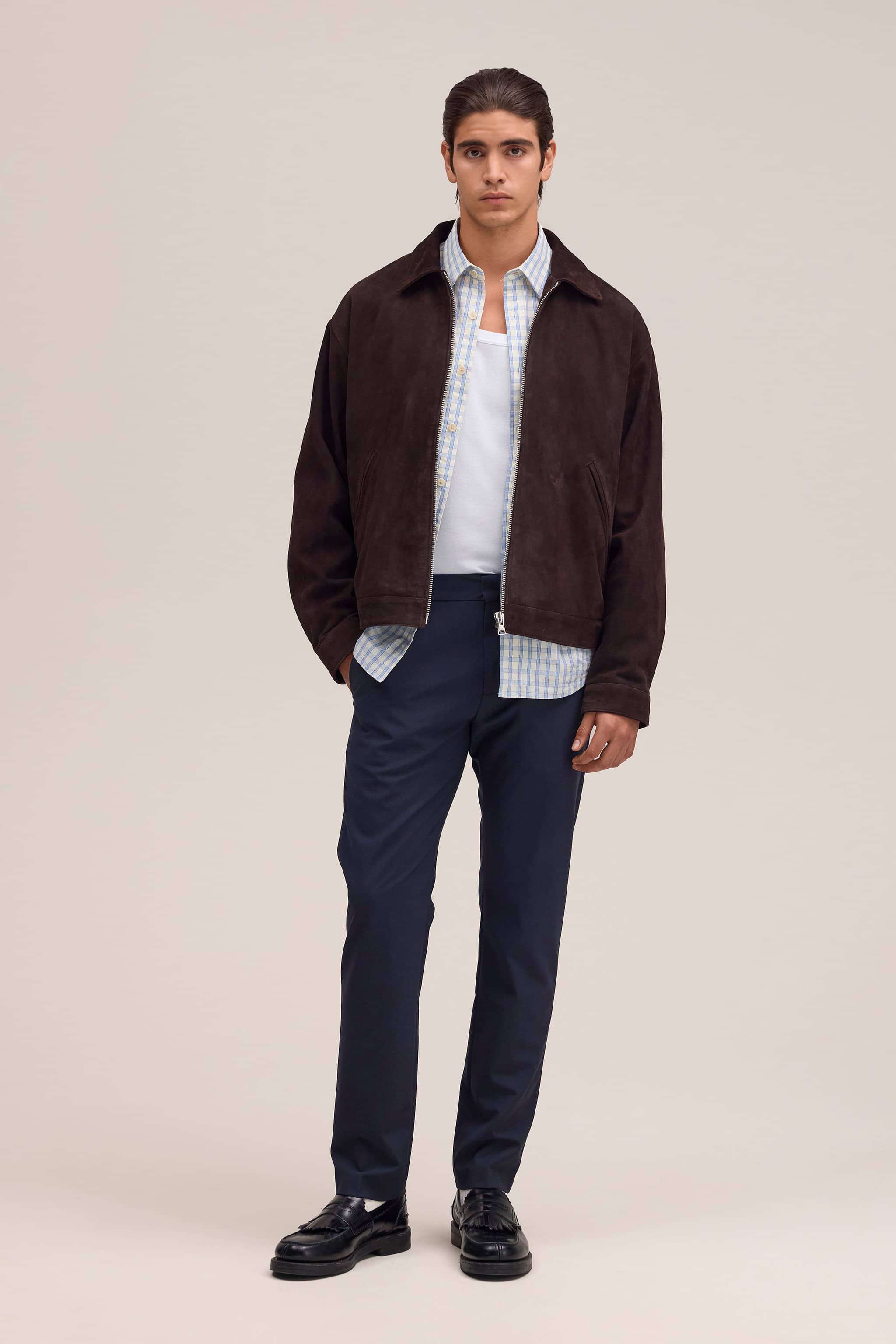 Regular fit chino made from Italian gabardine cotton with a smooth handfeel and slight stretch.