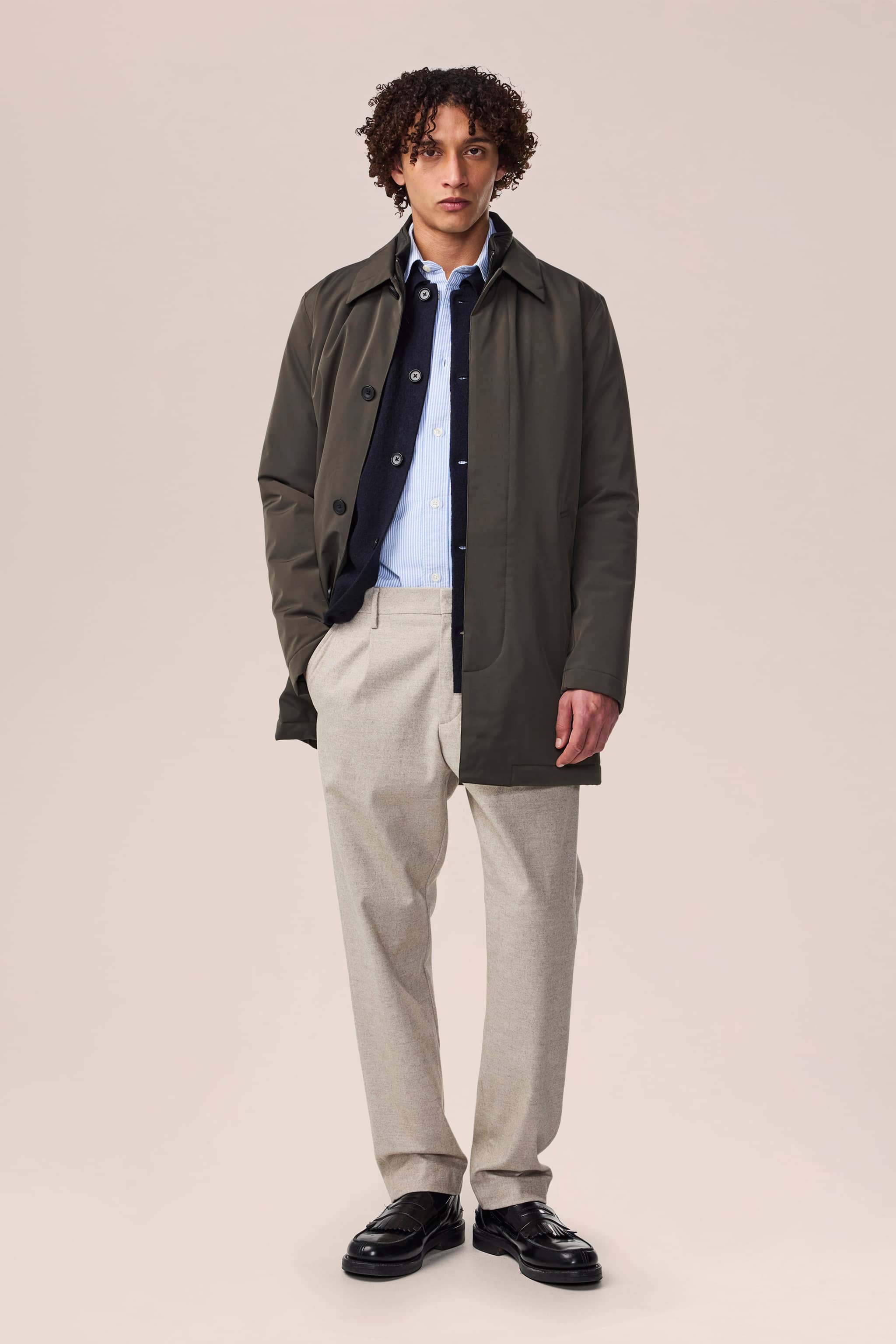 From desk to drinks – discover our modern dress pants in organic cotton twill, relaxed or lightly tapered, combining comfort with classic style. Find your new pair for all occassions.
