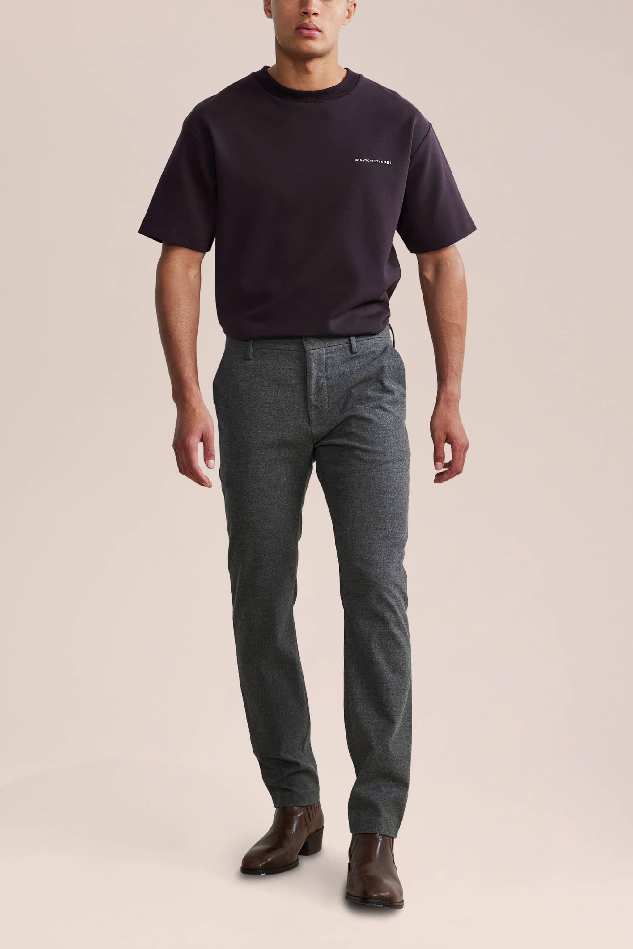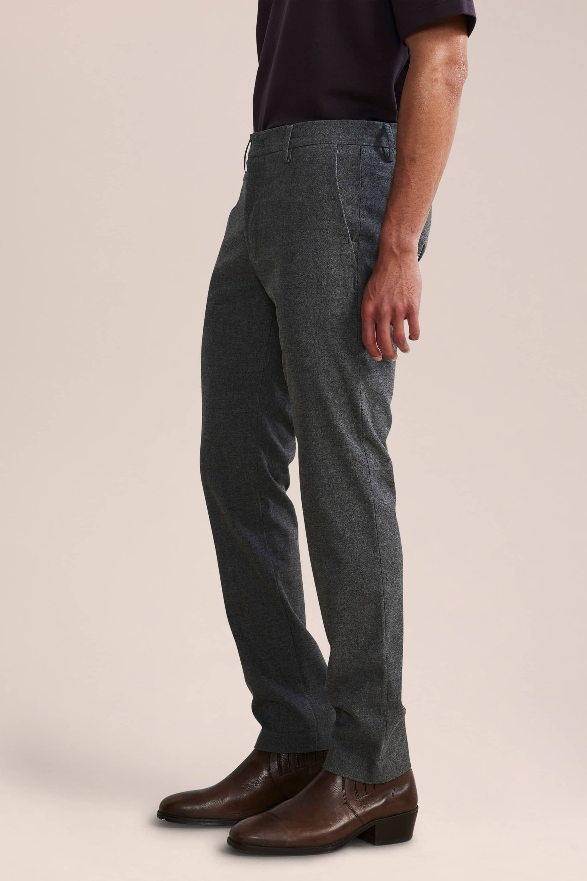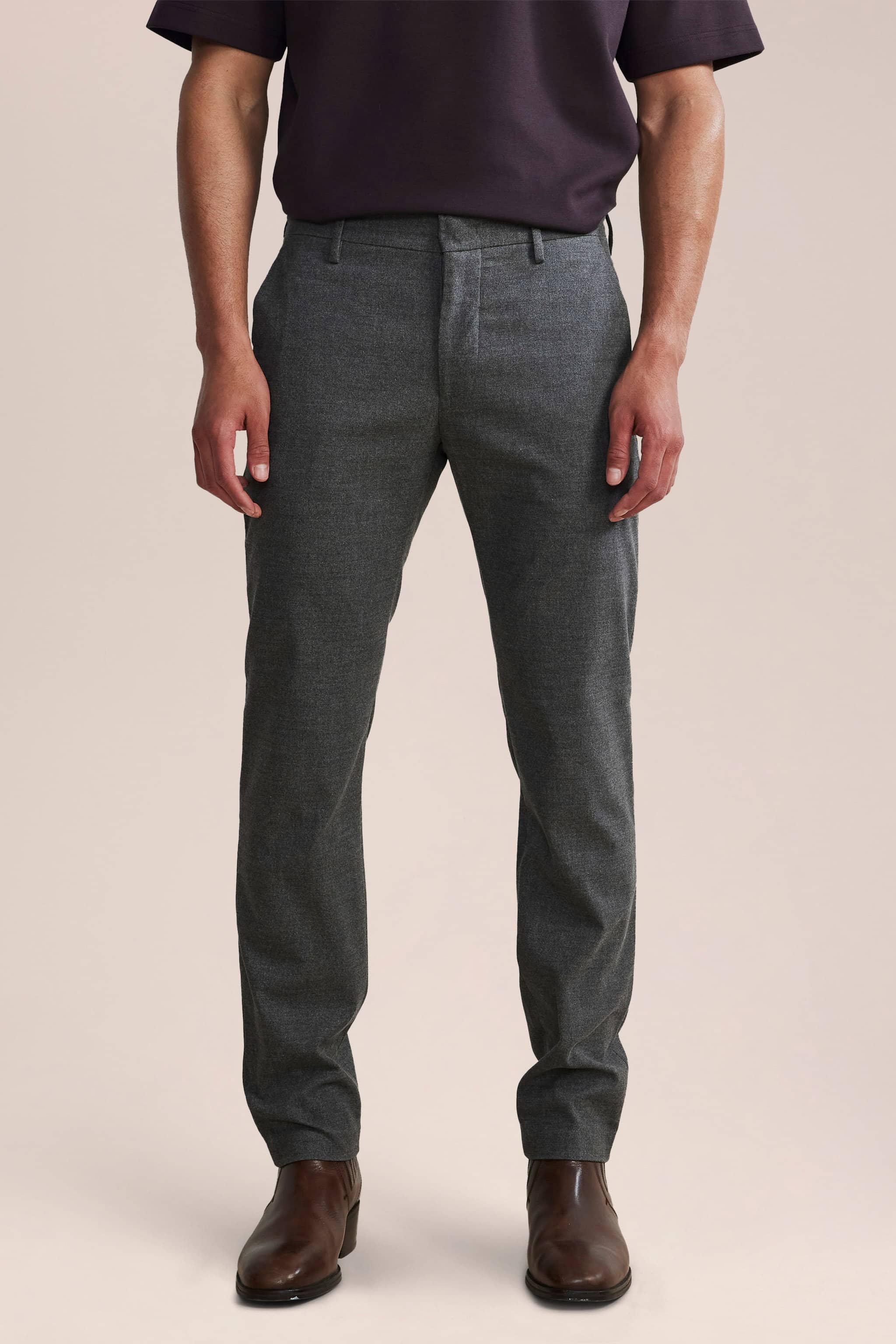 Theo is a chino at heart but with the formal elements of a dress pant. This versatile mid-rise trouser has a slightly tapered fit. Crafted from a BCI sourced cotton and polyester-blend melange with a touch of stretch and nice color scheme. Finished with a crisp crease at leg and blind hem making them a great choice, on-or-off the clock. Better Cotton Initiative is a non-profit that promotes a healthier standard for growing cotton globally.