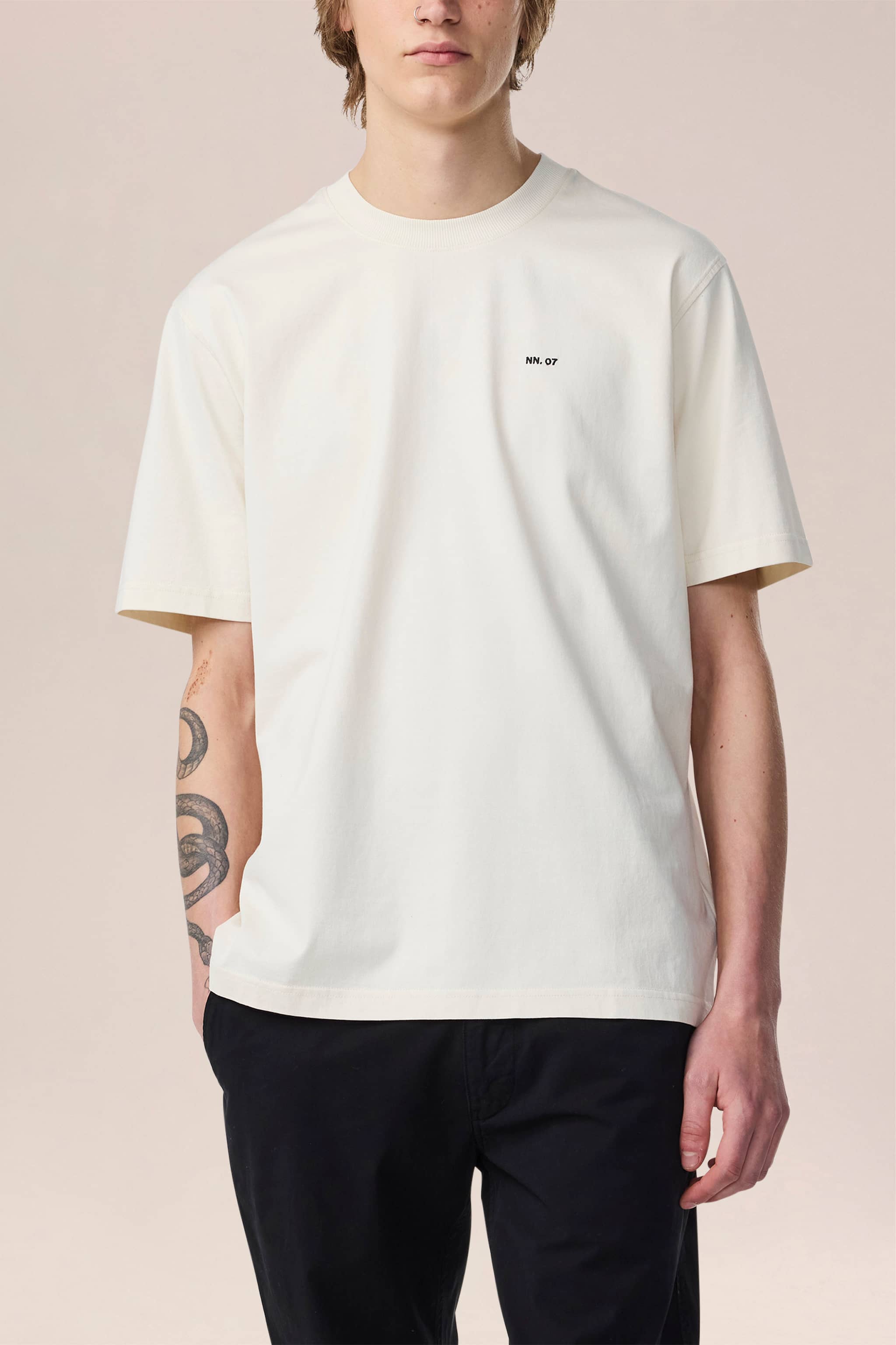 T-shirt med normal passform i mjuk single jersey av kammad bomull för en slät och andningsbar känsla. Designad med ribbad hals och synliga sömmar över axlarna.