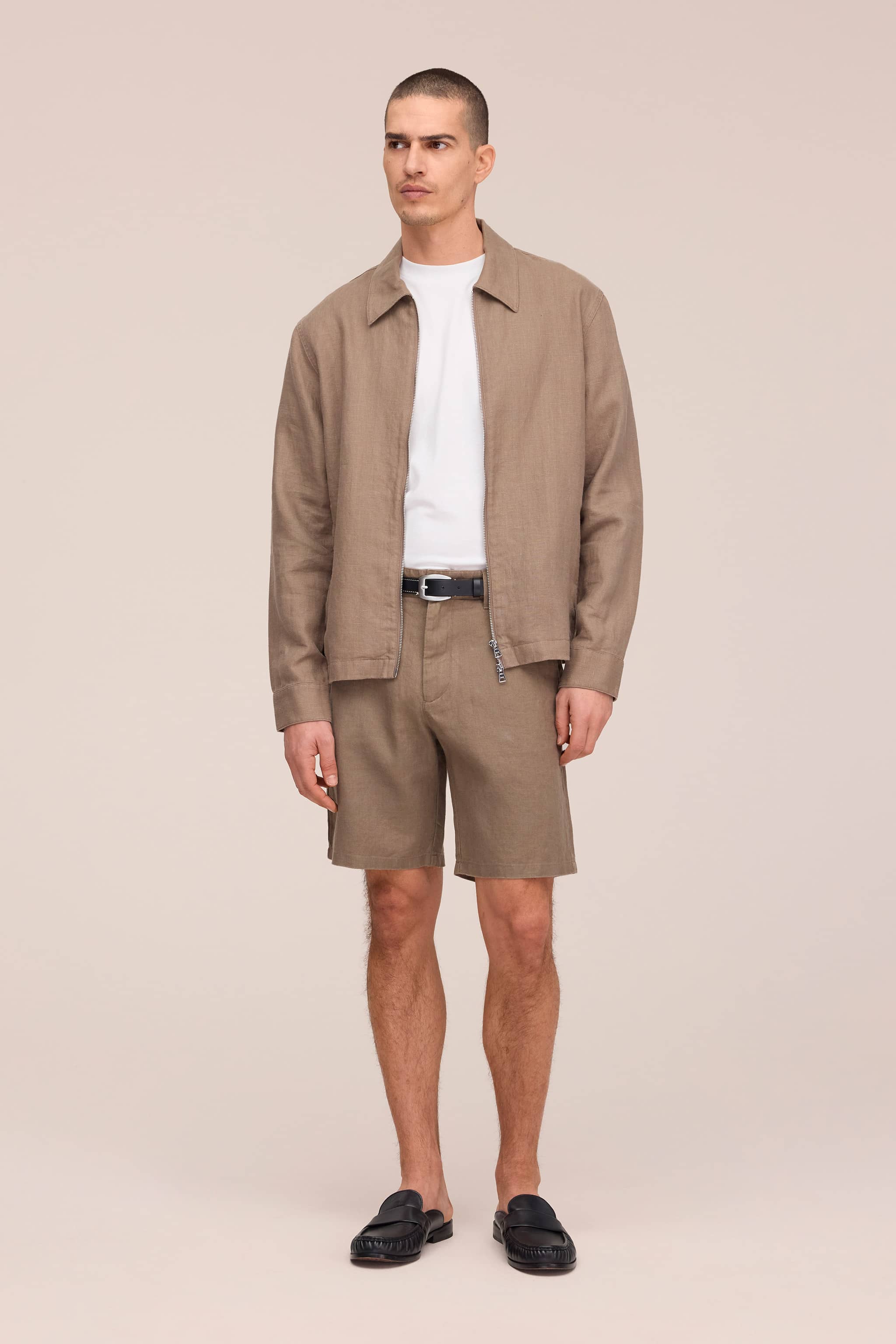 Chinoshorts i europeiskt Linnene, 260 g/m², i regular fit med raka ben och rakt benslut; vävda i tåligt tuskaft för form och styrka med krispig, torr handkänsla och följsamt fall. Knappstängning och passpoalerade bakfickor med NN.07-broderi.