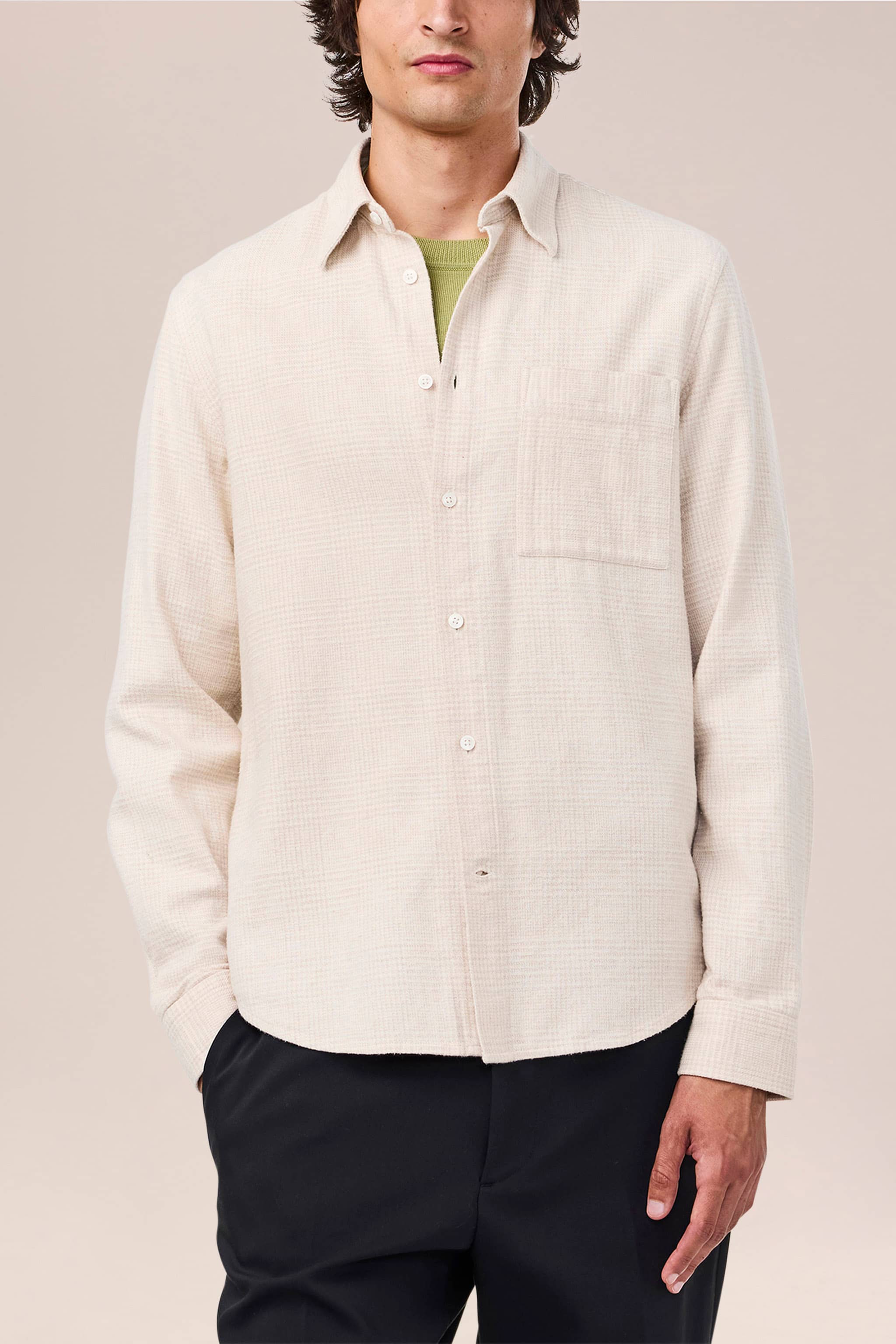 Långärmad skjorta tillverkad i garnfärgad bomull. Designad med en påsydd ficka och avtagbara kragsta. .