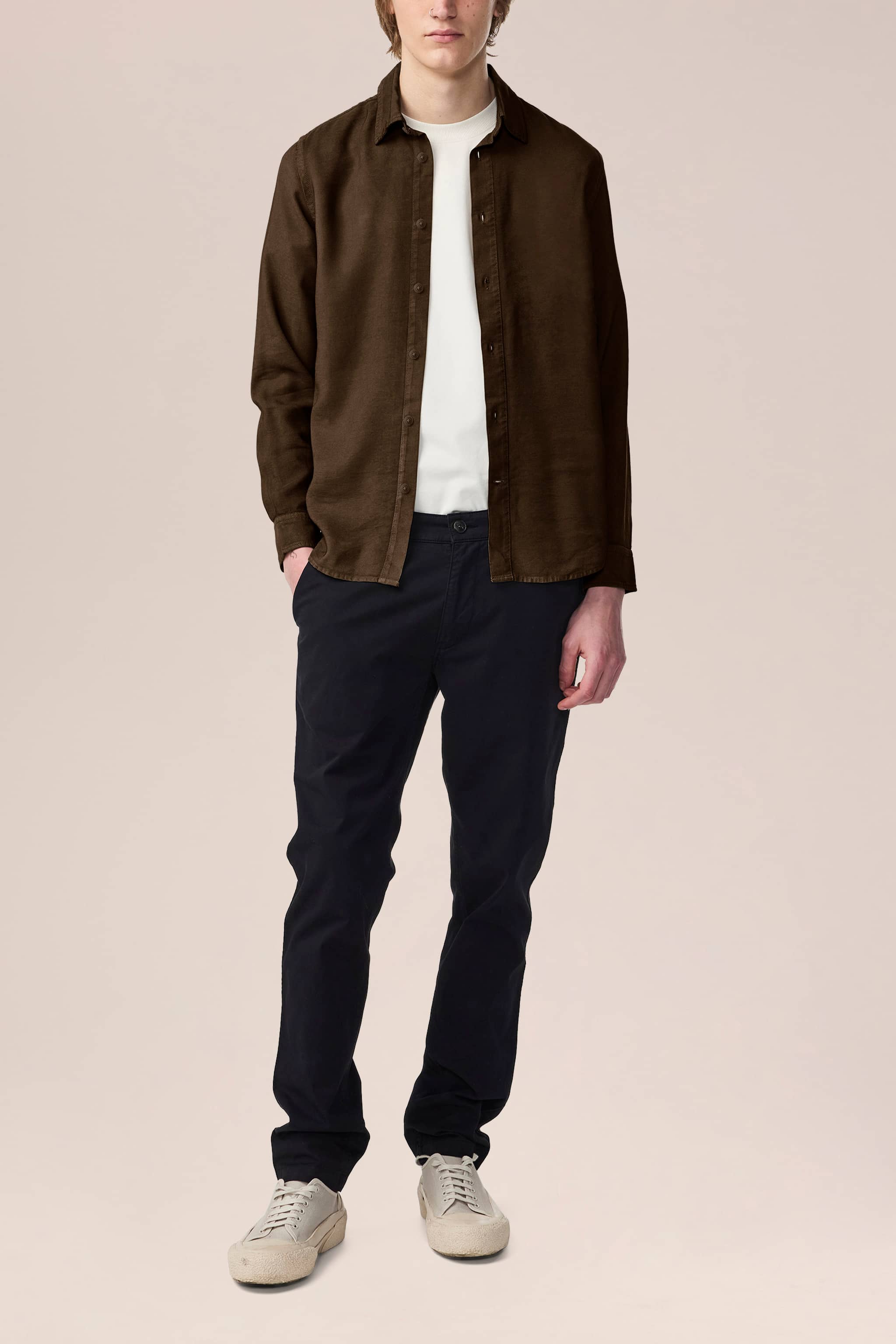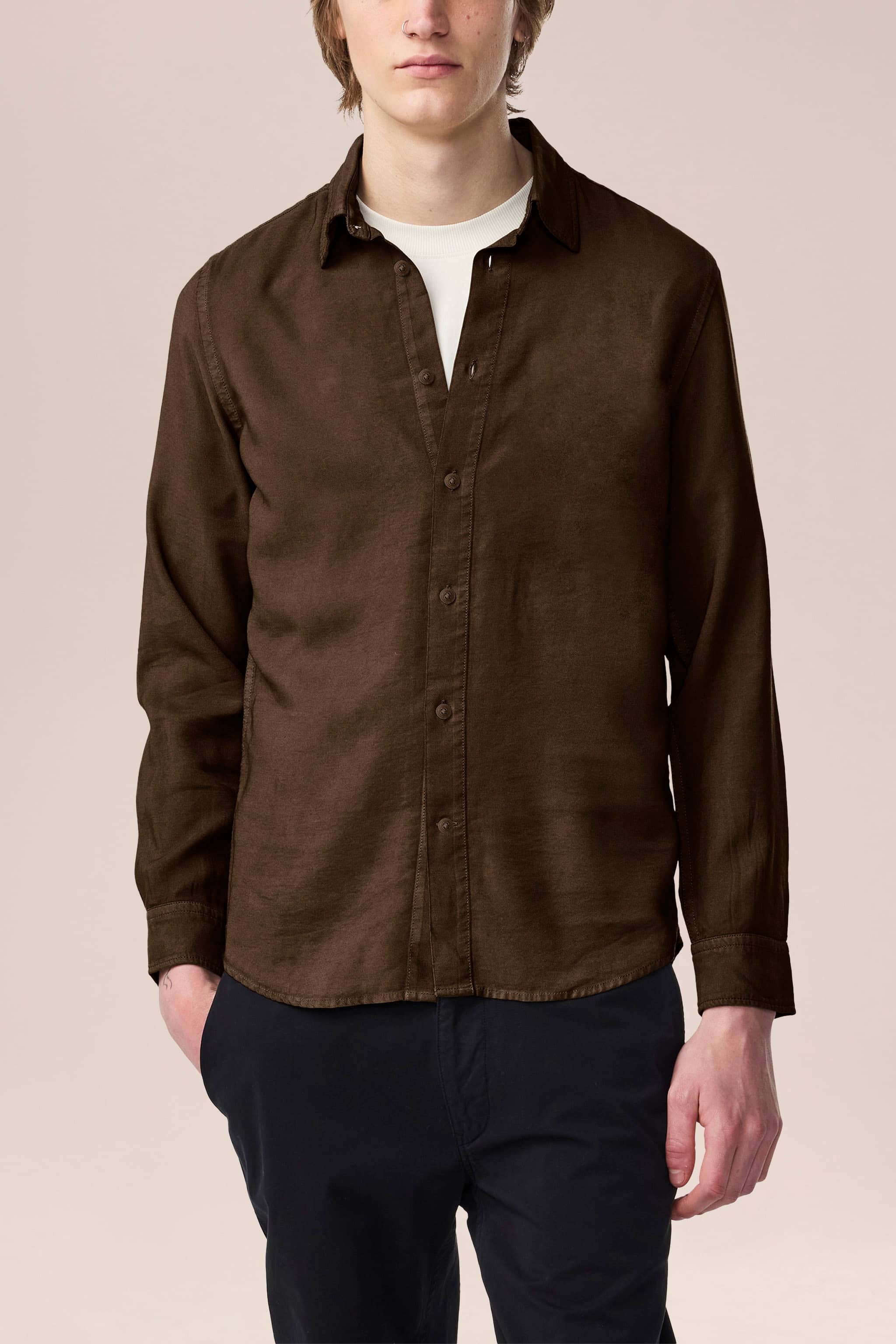 Långärmad button-down skjorta tillverkad i LENZING™ ECOVERO™ viskose färgtvättad twill. Utsmyckad med knappar i pärlemor.