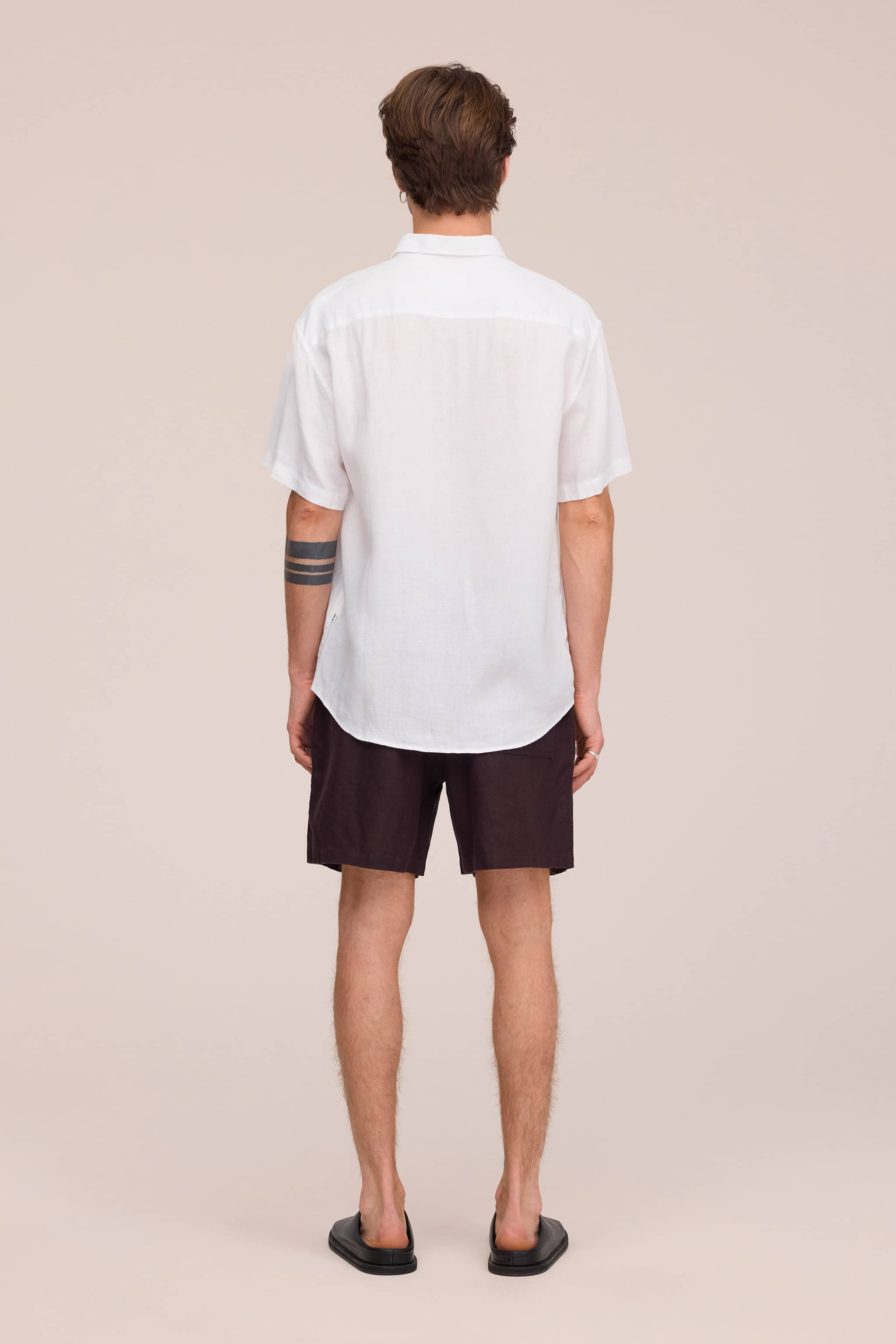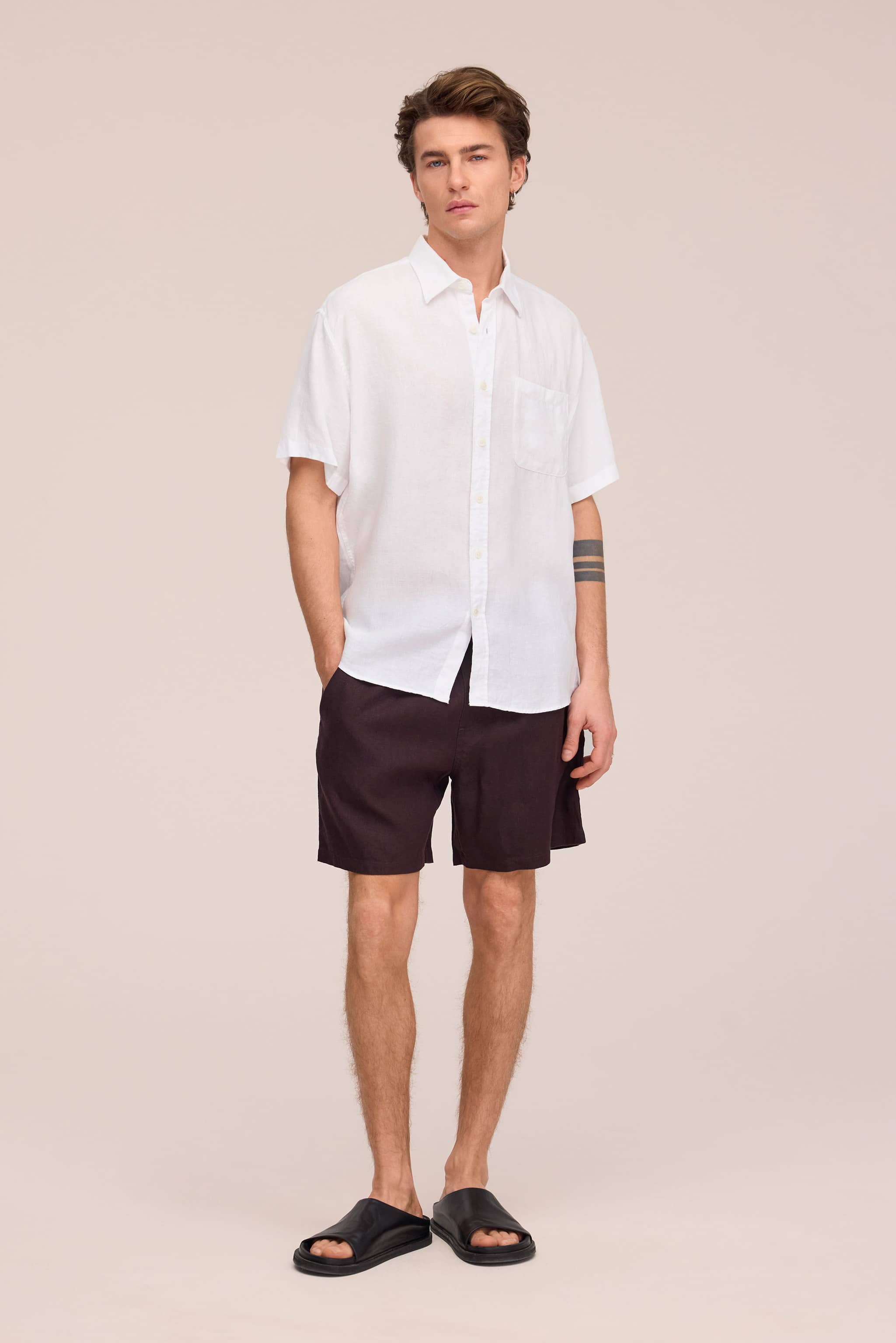 Kortärmad skjorta i europeiskt Linnene med regular fit, vävd i tuskaft för ett krispigt uttryck med mjukt, följsamt fall. Avslutad med kragpinnar och färgmatchade NN.07‑knappar för en avslappnad, vardaglig stil.