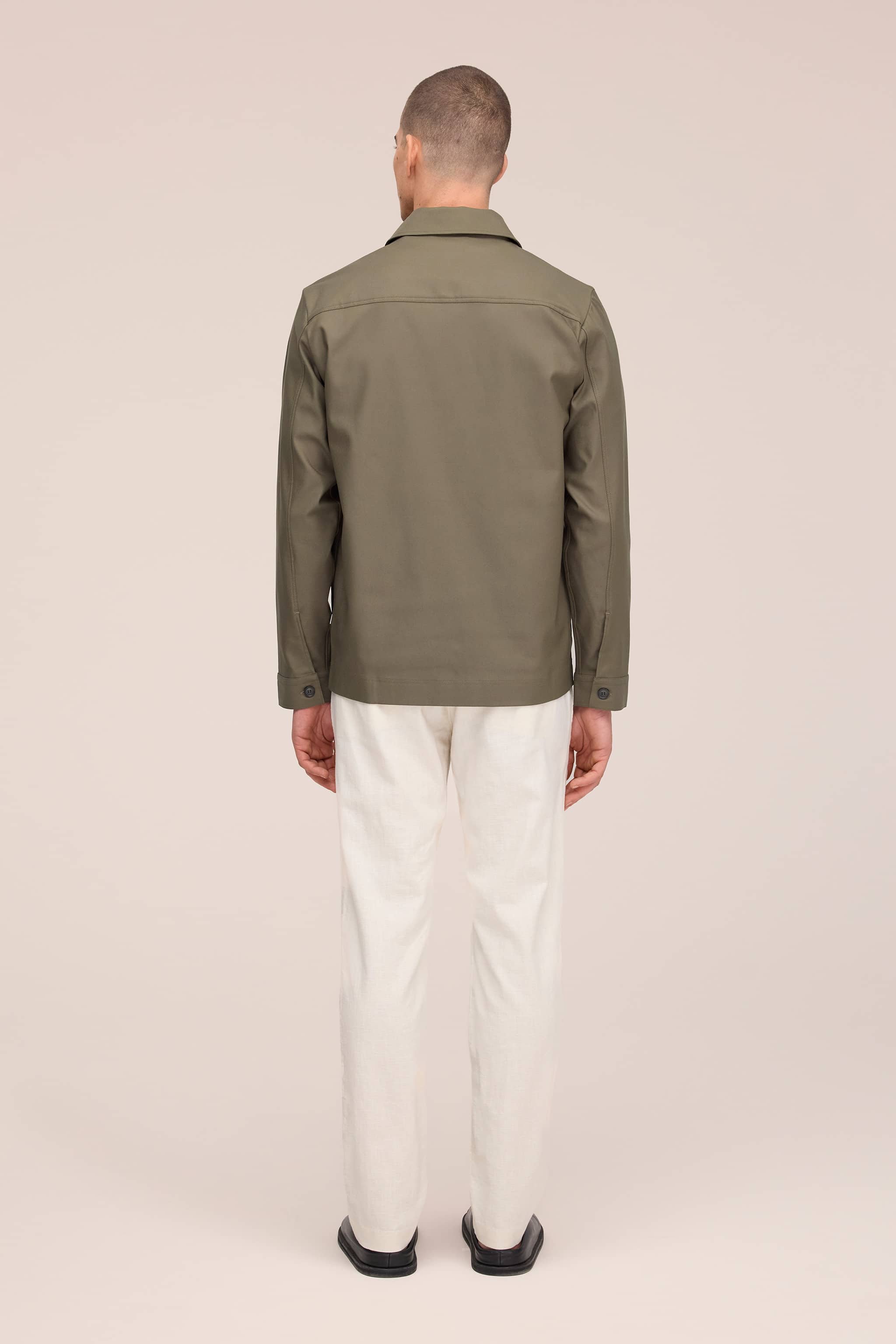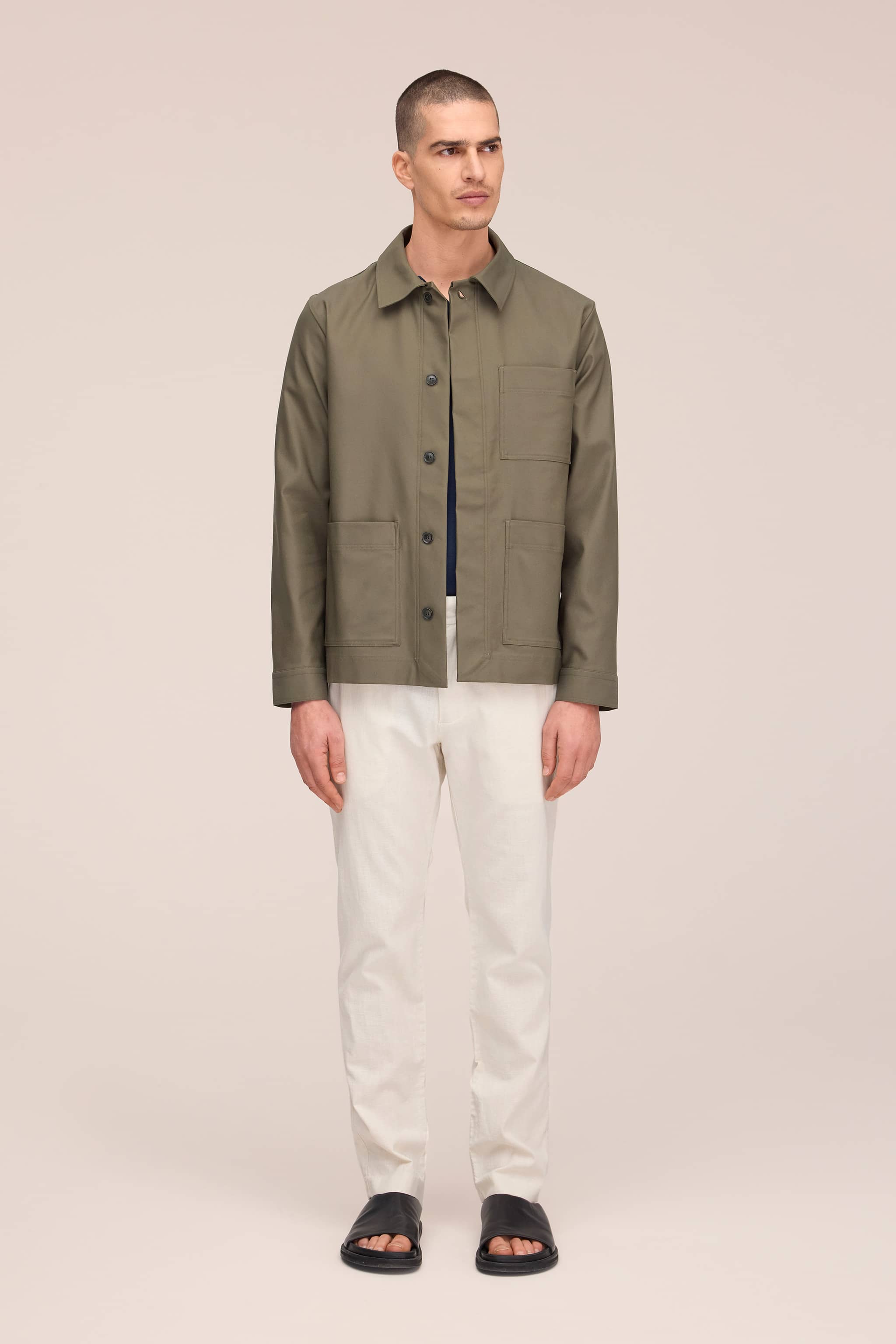 Workwear-inspired overshirt crafted in organic cotton. Designed with a soft collar, a single chest pocket, and twin patch pockets at the waist.