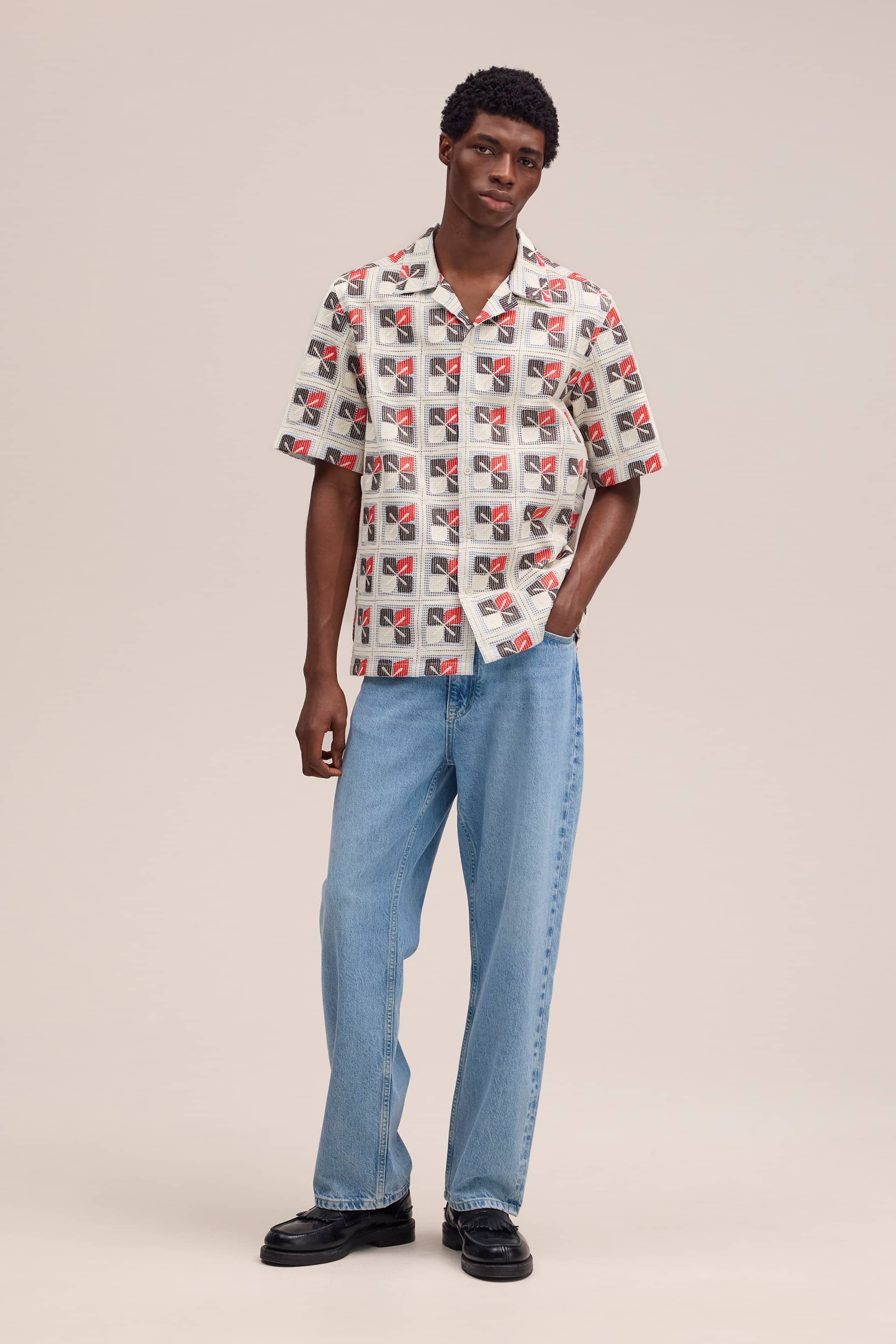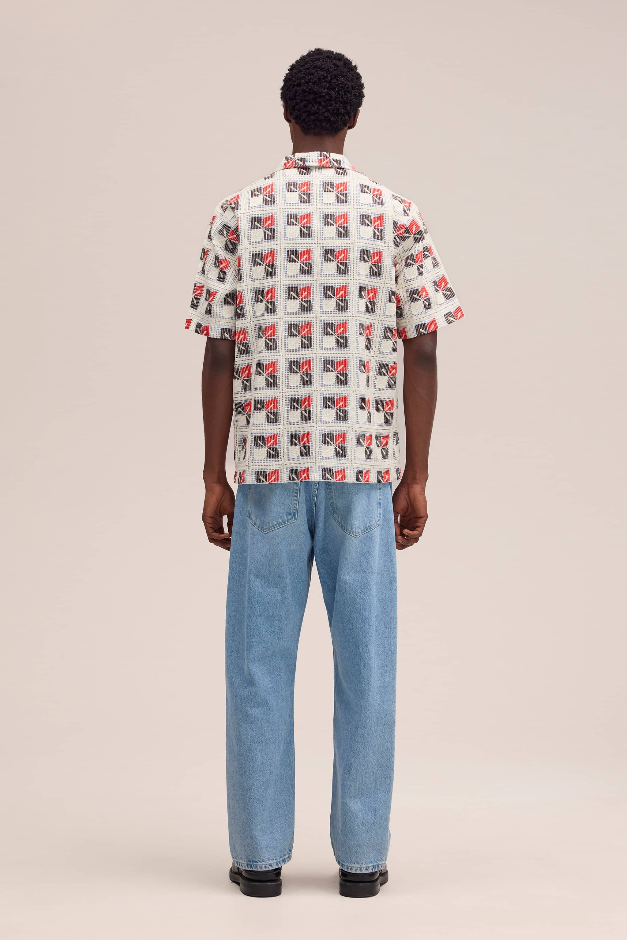 Kortärmad skjorta i polyester i regular fit. Lätt och andningsbar med en tydligt strukturerad yta och krispig handkänsla som känns sval mot huden. Avslutas med NN.07‑knappar i corozo.