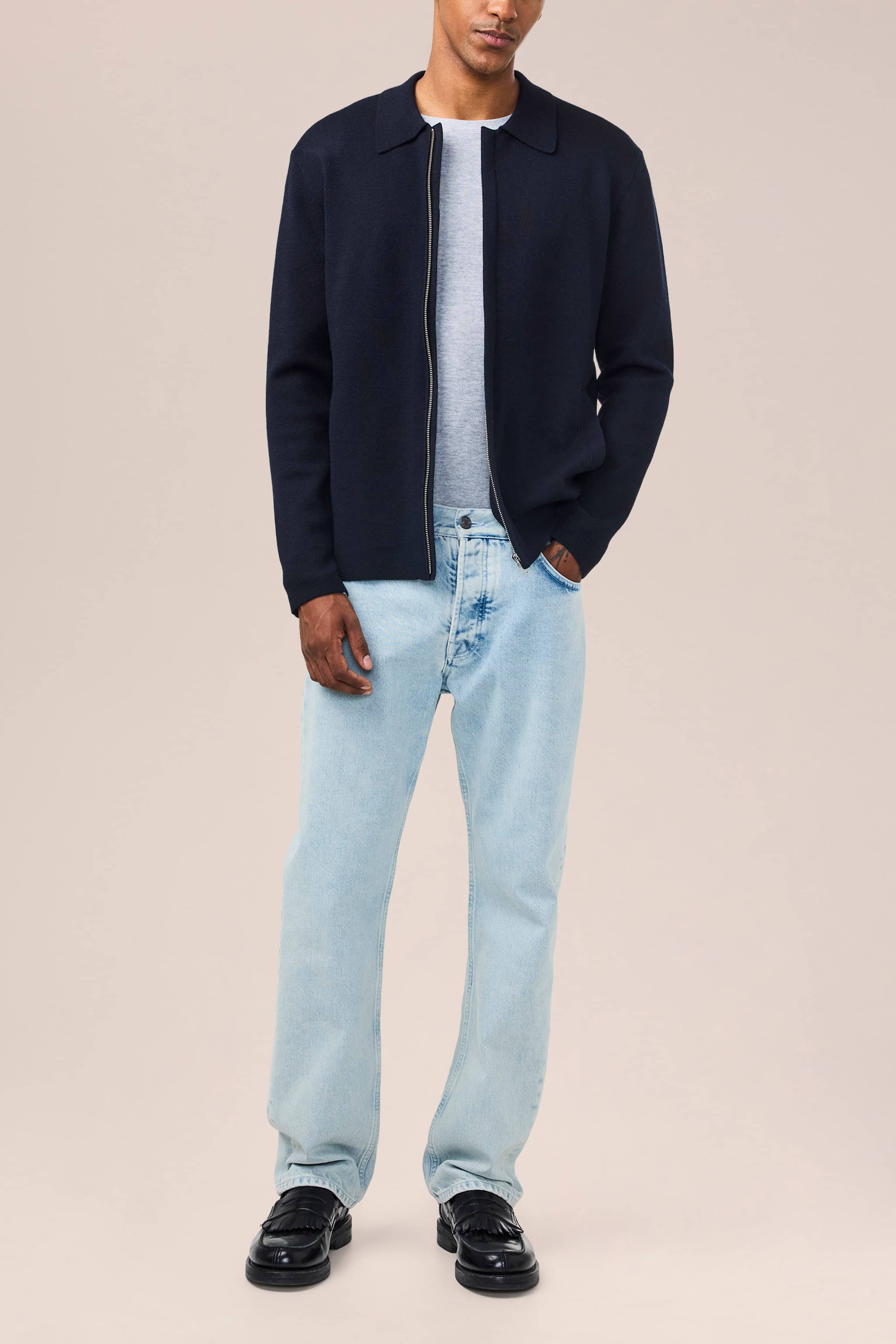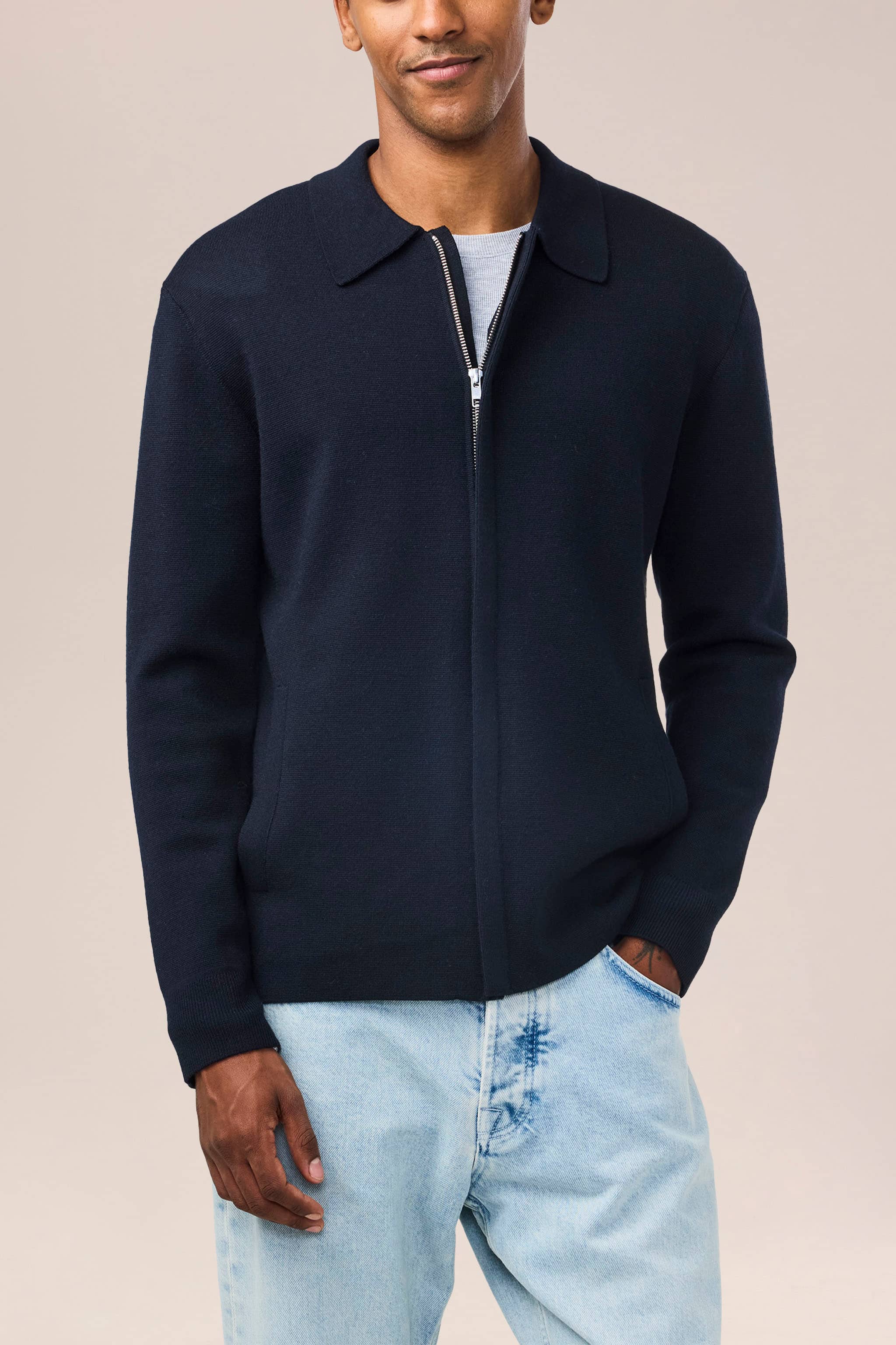 Stretchig stickad tröja med hel dragkedja tillverkad av en kompakt, mjuk och certificerad ullblandning med ren yta, designad med NN.07-logotyp på dragkedjan.