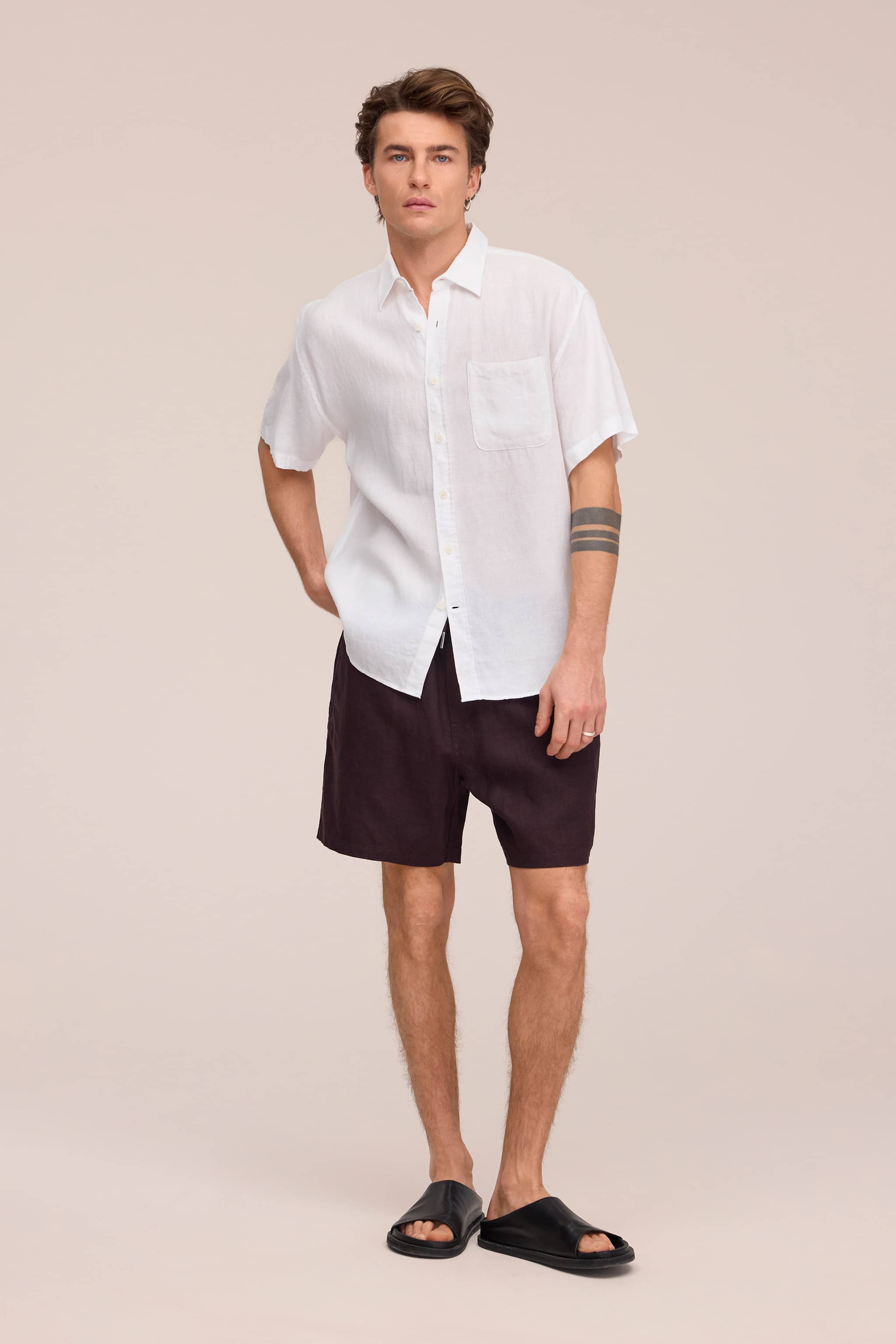 Avslappnade shorts tillverkade av andningsbart europeiskt linne på 260 g/m².
