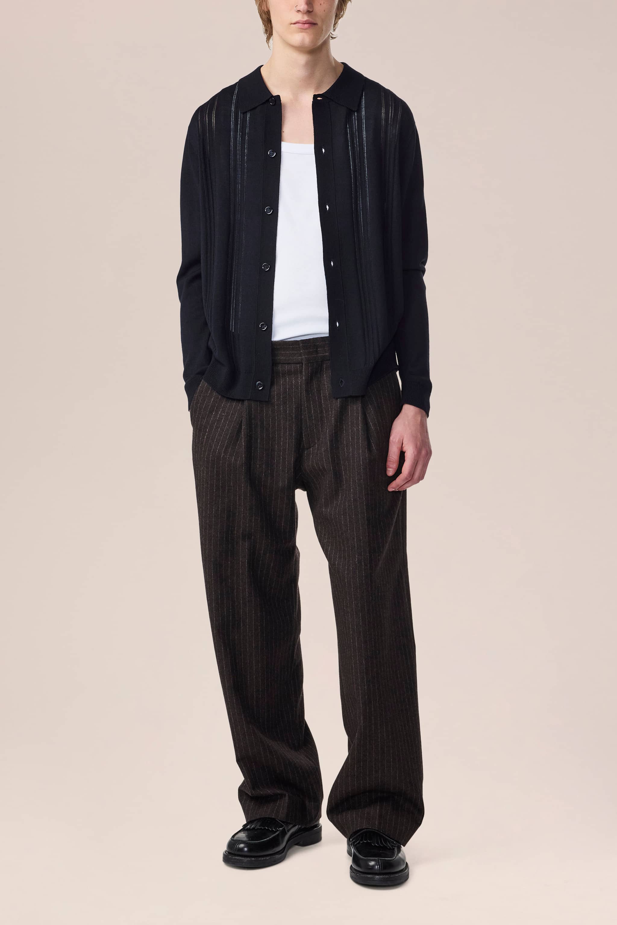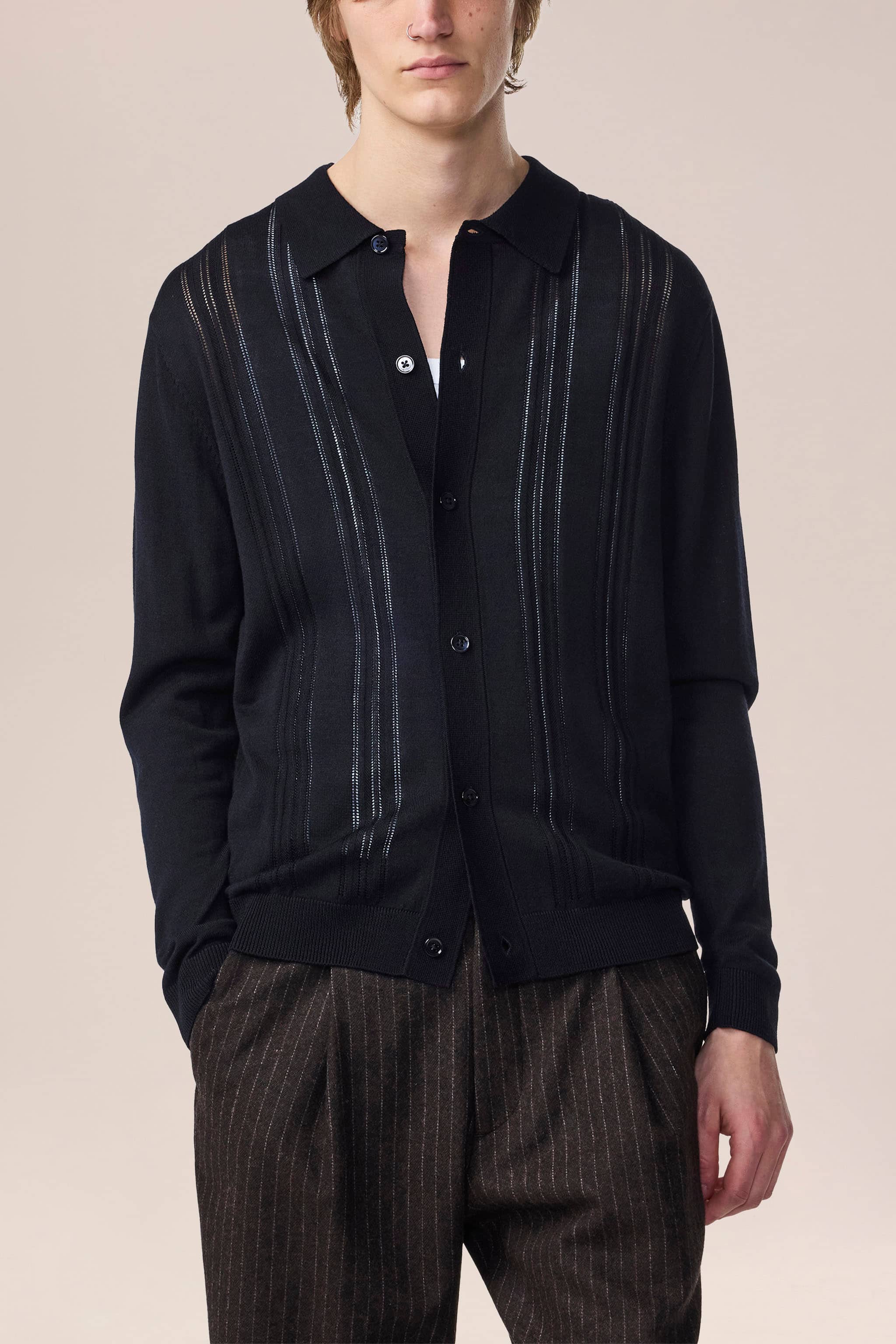 Lättviktig polokofta i regular fit gjord av en mjuk ullblandning i en med en antydan till stretch. Avslutad med pointellestickning och pärlemorknappar.